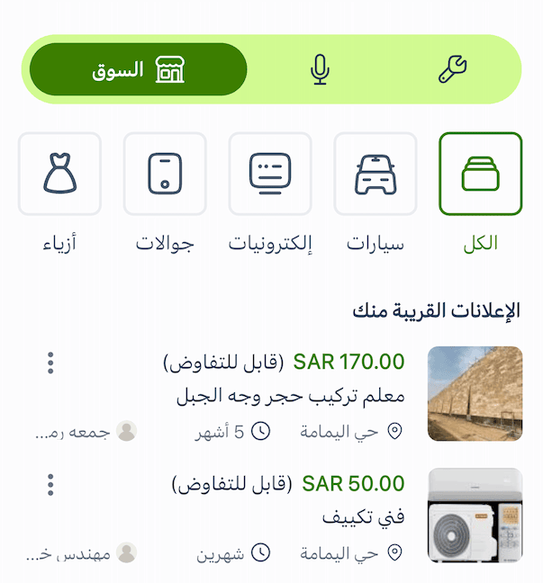 - من خلال قسم "فني"، تقدر تختار الخدمة اللي تحتاجها مثل السباكة أو الكهرباء، وتطلب من مزودي الخدمة المحليين اللي متوفرين في منطقتك.